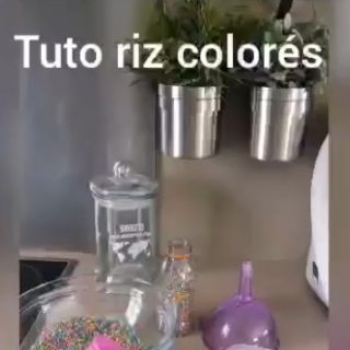 Delphine vous propose une activité de transvasement pour les petits à partir de deux ans, avec du riz coloré. (Vous pouvez conserver le riz dans une boîte, un bac à sable, un sachet, pendant...