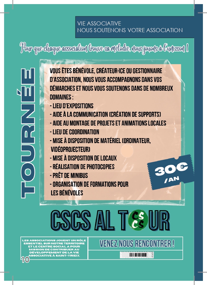 Les associations jouent un rôle essentiel sur notre territoire et le centre social a pour mission de contribuer au développement de la vie associative à Saint-Yrieix. Vous êtes bénévoles, créateur ou gestionnaire d’association, nous vous accompagnons dans vos démarches et nous vous soutenons dans de nombreux domaines :